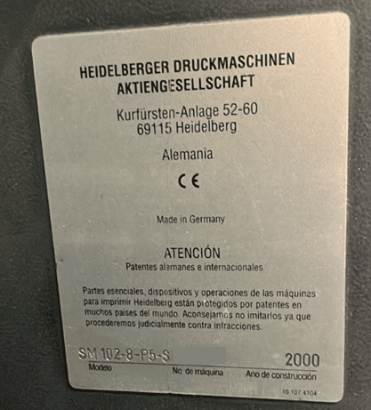 21 septiembre, 2025Heidelberg SM102-8P5 año 2000